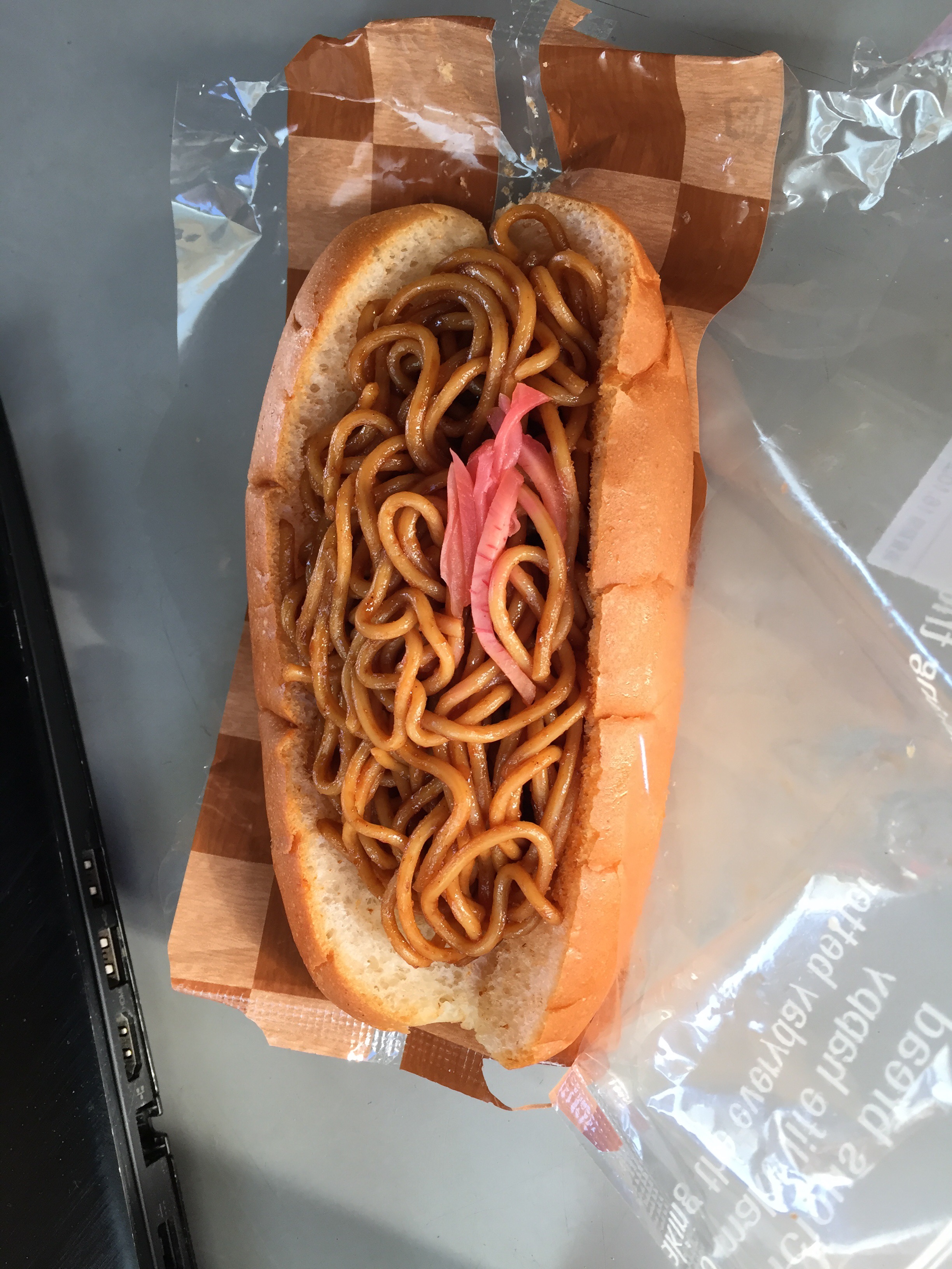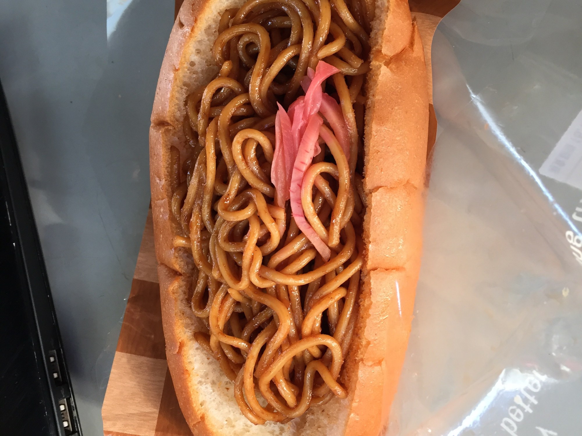 Take some fried noodles, stuff them in a hotdog bun and you get yakisoba pan.