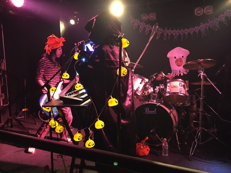 You can see for yourself from the videos, but both bands brought both energy and quirkiness to the stage. The music swings between catchy, sentimental songs and more noisy, experimental ones and the bands clearly embrace a pretty broad spectrum of genres. The show was ostensibly Halloween themed, so the bands dressed up, threw candy into the crowd and chanted “Hapi Harouin” between songs.